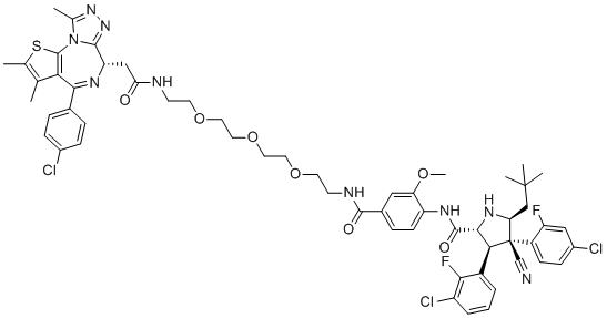 SMILESO=C([C@@H]1N[C@@H](CC(C)(C)C)[C@](C#N)(C2=CC=C(Cl)C=C2F)[C@H]1C3=CC=CC(Cl)=C3F)NC4=CC=C(C(NCCOCCOCCOCCNC(C[C@H]5C6=NN=C(C)N6C7=C(C(C)=C(C)S7)C(C8=CC=C(Cl)C=C8)=N5)=O)=O)C=C4OC