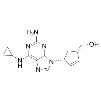 Abacavir 是一种具有口服活性、竞争性核苷酸逆转录酶 (nucleoside reverse transcriptase) 抑制剂。 Abacavir 可抑制 HIV 的复制。Abacavir 在前列腺癌细胞系中显示出抗癌活性。Abacavir 可突破血脑屏障,抑制端粒酶 (telomerase) 活性。