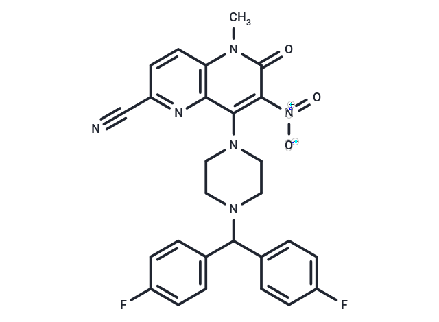 SMILESN#CC1=NC2=C(N(C)C(C([N+]([O-])=O)=C2N3CCN(C(C4=CC=C(C=C4)F)C5=CC=C(C=C5)F)CC3)=O)C=C1