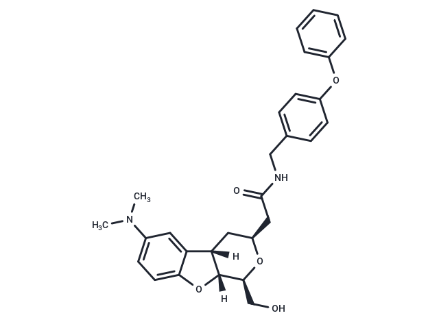 SMILESC(O)[C@H]1[C@]2([C@](C=3C(O2)=CC=C(N(C)C)C3)(C[C@@H](CC(NCC4=CC=C(OC5=CC=CC=C5)C=C4)=O)O1)[H])[H]