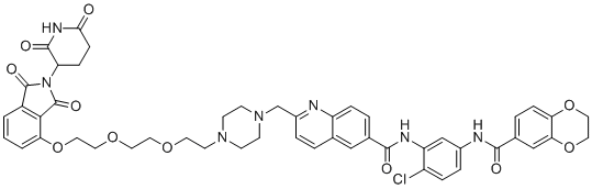 化学全称N-(2-Chloro-5-(2,3-dihydrobenzo[b][1,4]dioxine-6-carboxamido)phenyl)-2-((4-(2-(2-(2-((2-(2,6-dioxopiperidin-3-yl)-1,3-dioxoisoindolin-4-yl)oxy)ethoxy)ethoxy)ethyl)piperazin-1-yl)methyl)quinoline-6-carboxamide