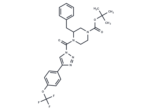SMILESO=C(OC(C)(C)C)N1CCN(C(=O)N2N=NC(=C2)C=3C=CC(OC(F)(F)F)=CC3)C(CC=4C=CC=CC4)C1