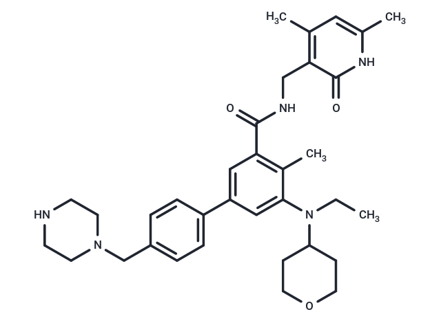 SMILESCCN(C1CCOCC1)c1cc(cc(C(=O)NCc2c(C)cc(C)[nH]c2=O)c1C)-c1ccc(CN2CCNCC2)cc1