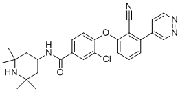 SMILESO=C(NC1CC(C)(C)NC(C)(C)C1)C2=CC=C(OC3=CC=CC(C4=CC=NN=C4)=C3C#N)C(Cl)=C2