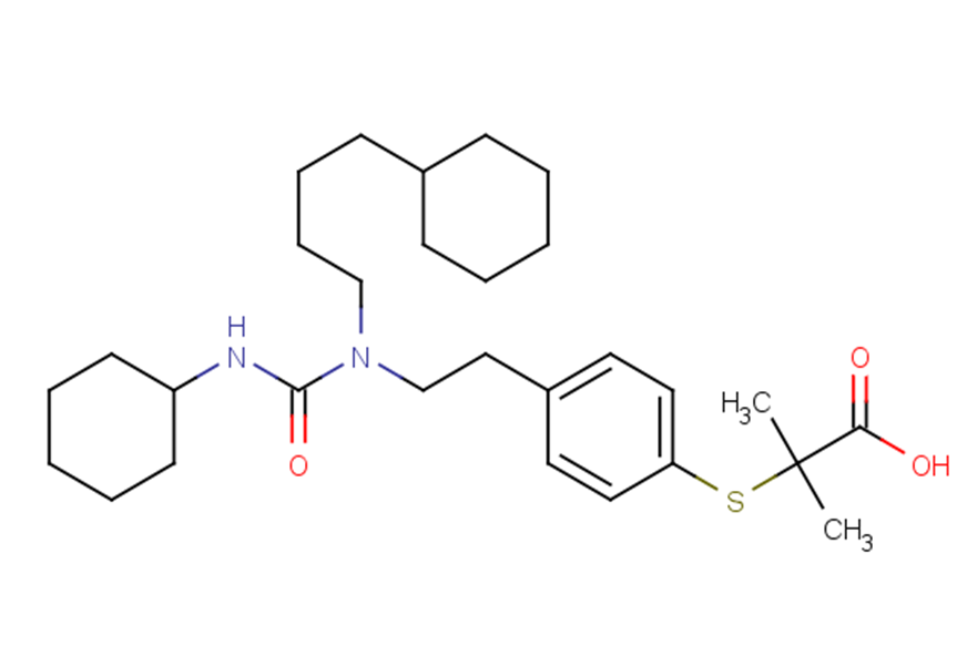 SMILESCC(C)(Sc1ccc(CCN(CCCCC2CCCCC2)C(=O)NC2CCCCC2)cc1)C(O)=O