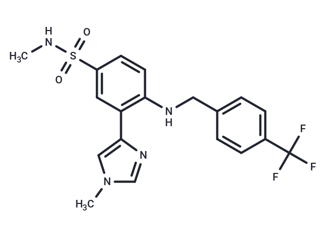 SMILESN(CC1=CC=C(C(F)(F)F)C=C1)C2=C(C=C(S(NC)(=O)=O)C=C2)C=3N=CN(C)C3