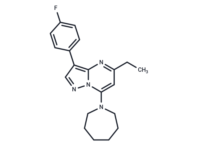 SMILESFC1=CC=C(C=C1)C=2C=NN3C2N=C(C=C3N4CCCCCC4)CC