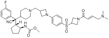 化学全称methyl ((1S,2R)-2-((S)-cyano(1-((1-(4-((1-((E)-4-(dimethylamino)but-2-enoyl)azetidin-3-yl)sulfonyl)phenyl)azetidin-3-yl)methyl)piperidin-4-yl)(3-fluorophenyl)methyl)cyclopentyl)carbamate