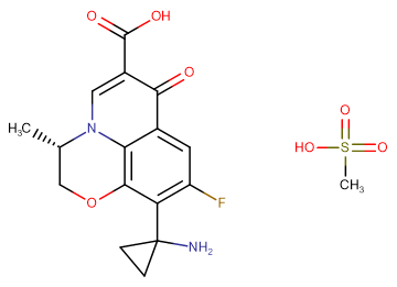 SMILESC[C@H]1COC2=C3N1C=C(C(=O)C3=CC(=C2C4(CC4)N)F)C(=O)O.CS(=O)(=O)O
