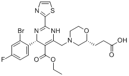 化学全称3-((R)-4-(((R)-6-(2-Bromo-4- fluorophenyl)-5-(ethoxycarbonyl)-2-(thiazol-2-yl)- 3,6-dihydropyrimidin-4-yl)methyl)morpholin-2-yl)propanoic acid
