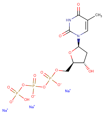 SMILESCC1=CN(C(=O)NC1=O)[C@H]2C[C@@H]([C@H](O2)COP(=O)([O-])OP(=O)([O-])OP(=O)(O)[O-])O.[Na+].[Na+].[Na+]