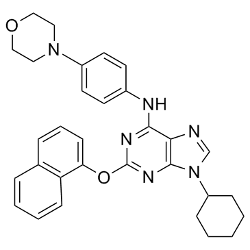 化学全称9-cyclohexyl-N-(4-morpholinophenyl)-2-(naphthalen-1-yloxy)-9H-purin-6-amine