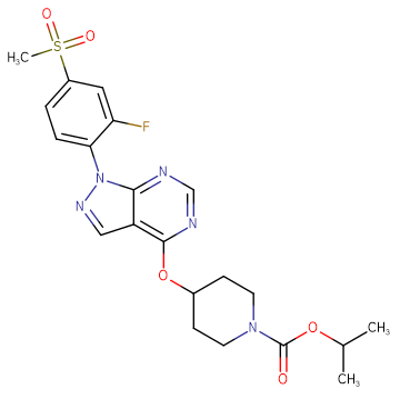 SMILESO=C(N1CCC(OC2=C3C(N(C4=CC=C(S(=O)(C)=O)C=C4F)N=C3)=NC=N2)CC1)OC(C)C
