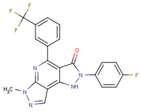 化学全称2-(4-Fluoro-phenyl)-6-methyl-4-(3-trifluoromethyl-phenyl)-1,6-dihydro-2H-1,2,5,6,7-pentaaza-as-indacen-3-one