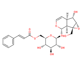 SMILESc1ccc(cc1)/C=C/C(=O)O[C@H]1[C@@H]2C=CO[C@H]([C@@H]2[C@@]2([C@H]1O2)CO)O[C@@H]1O[C@@H]([C@H]([C@@H]([C@H]1O)O)O)CO