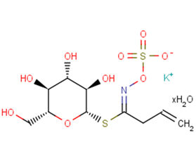 黑芥子苷是一种芥子油苷,可用作识别、区分和表征黑芥子酶/硫代葡萄糖苷葡萄糖水解酶/硫代葡萄糖苷酶的系统化合物。