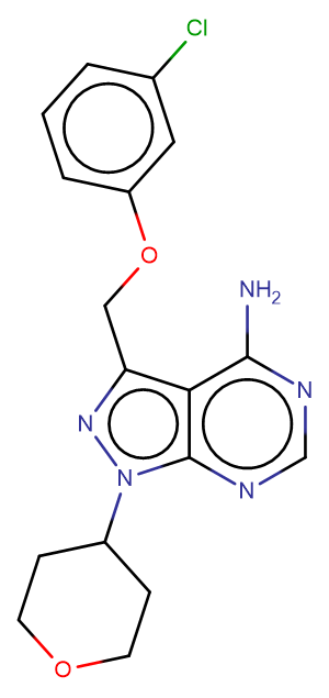 SMILESNc1ncnc2n(nc(COc3cccc(Cl)c3)c12)C1CCOCC1