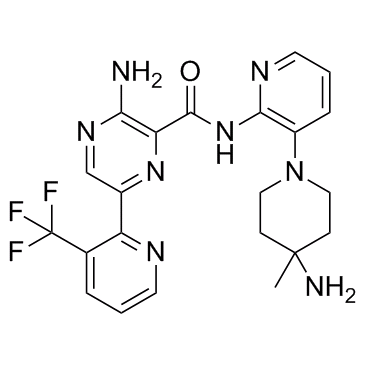 体内实验Animal Model:Mice implanted with 92.1 GNAQ mutant uveal melanoma cells.Dosage:15, 30, 75, 150 mg/kg Administration:P.O. (bid) for 35 days Result:Dose-dependently suppressed the tumor growth.