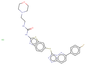 SMILESCl.Fc1ccc(cc1)-c1ccc2nnc(Sc3ccc4nc(NC(=O)NCCN5CCOCC5)sc4c3)n2n1