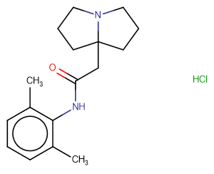 SMILESCc1cccc(C)c1NC(=O)CC12CCCN1CCC2.Cl