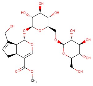 SMILESCOC(C([C@@H]1[C@H]2C(CO)=CC1)=CO[C@H]2O[C@@H]([C@@H]([C@H]1O)O)O[C@H](CO[C@@H]([C@@H]([C@H]2O)O)O[C@H](CO)[C@H]2O)[C@H]1O)=O