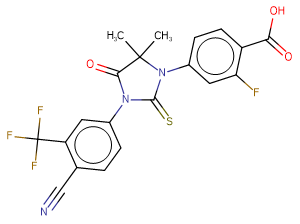 SMILESCC1(C)N(C(=S)N(C1=O)c1ccc(C#N)c(c1)C(F)(F)F)c1ccc(C(O)=O)c(F)c1