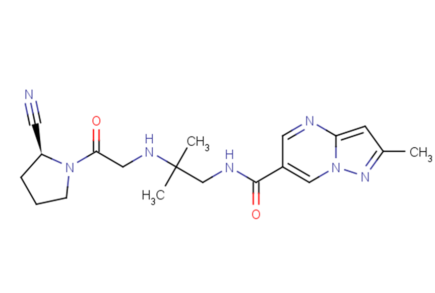 SMILESCC1=NN2C=C(C=NC2=C1)C(=O)NCC(C)(C)NCC(=O)N1CCC[C@H]1C#N