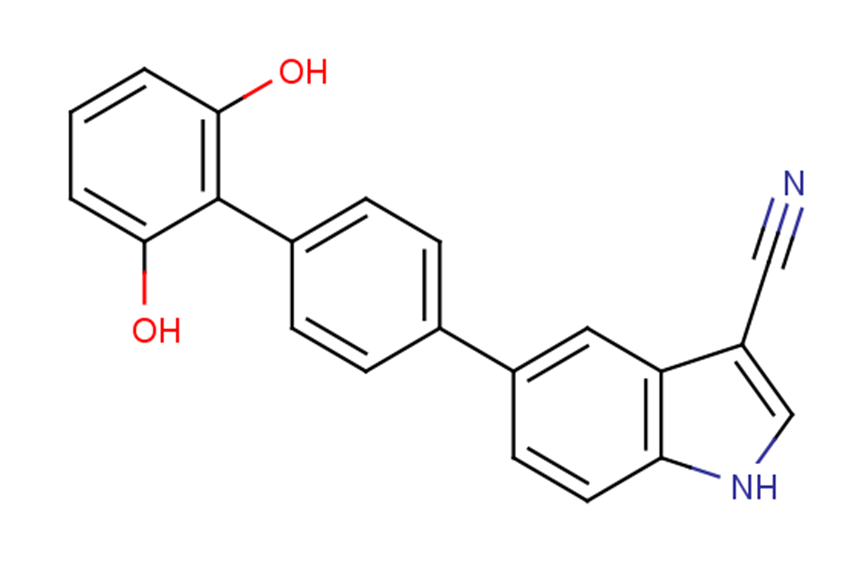 SMILESOc1cccc(O)c1-c1ccc(cc1)-c1ccc2[nH]cc(C#N)c2c1