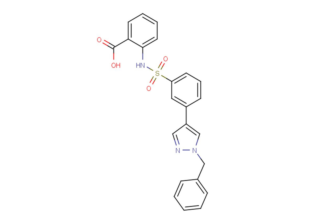 SMILESO=C(O)C1=CC=CC=C1NS(=O)(C2=CC=CC(C3=CN(CC4=CC=CC=C4)N=C3)=C2)=O