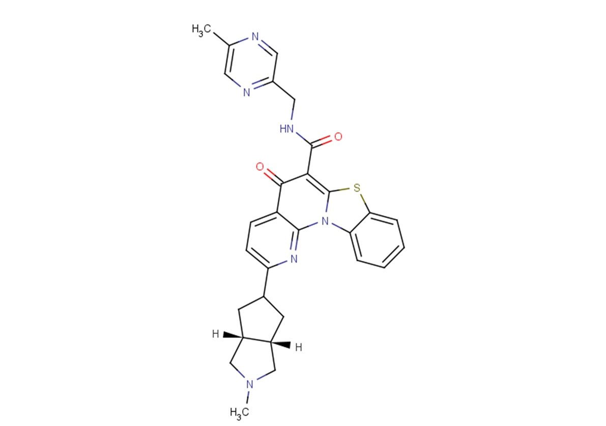 SMILESO=C1C(C(NCC2=NC=C(N=C2)C)=O)=C(SC3=CC=CC=C34)N4C5=NC(C6C[C@@](CN(C)C7)([H])[C@@]7([H])C6)=CC=C15