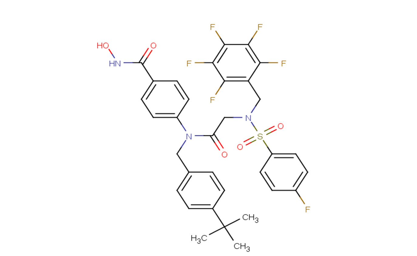 SMILESCC(C)(C)C1=CC=C(C=C1)CN(C2=CC=C(C=C2)C(=O)NO)C(=O)CN(CC3=C(C(=C(C(=C3F)F)F)F)F)S(=O)(=O)C4=CC=C(C=C4)F