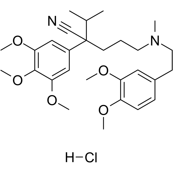 SMILESCl.COc1ccc(CCN(C)CCCC(C#N)(C(C)C)c2cc(OC)c(OC)c(OC)c2)cc1OC