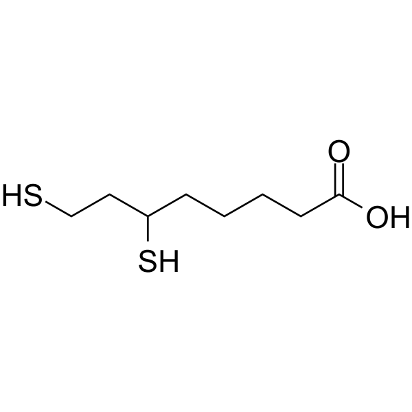 产品简述二氢硫辛酸是一种含二硫醇的羧酸,作为一种通用抗氧化剂,在浓度范围为 0.01-0.5 mM 时,对多种活性氧(包括过亚硝酸盐、羟基自由基、过氧化氢和次氯酸盐)具有高度反应性。
