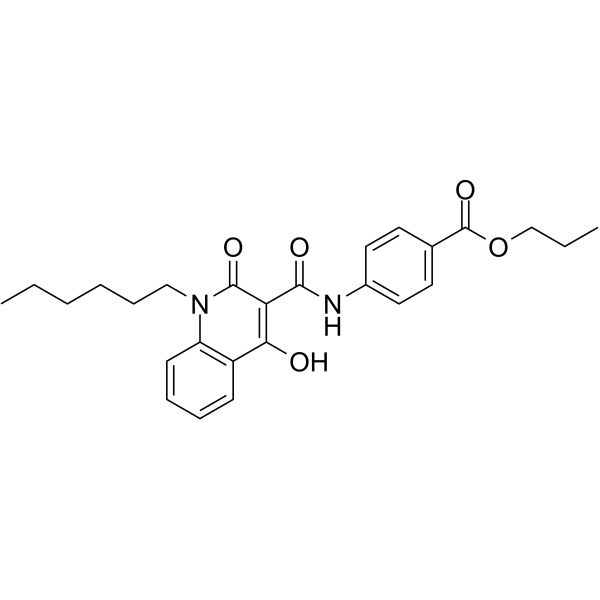 SMILESCCCCCCn1c2ccccc2c(O)c(C(=O)Nc2ccc(cc2)C(=O)OCCC)c1=O