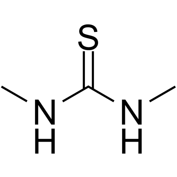 产品描述N,N'-Dimethylthiourea (DMTU), isolated from Allii Sativi Bulbus, is an orally active scavenger of hydroxyl radical ( OH) and blocks OH production by activated neutrophils in vitro. N,N'-Dimethylthiourea protects against water-immersion restraint stress (WIRS)-induced gastric mucosal lesions in rats by exerting its antioxidant action including OH scavenging and anti-inflammatory action.(In Vivo):N,N'-Dimethylthiourea (DMTU; 1, 2.5, or 5 mmol/kg; orally) administered at 0.5 h before the onset of WIRS reduces the severity of gastric mucosal lesions with attenuation of the changes in the levels of gastric mucosal MPO, pro-inflammatory cytokines, LPO, NOx, nonprotein SH, and vitamin C and gastric adherent mucus found at 3 h after the onset of WIRS in a dose-dependent manner in Male Wistar rats aged 6 weeks .