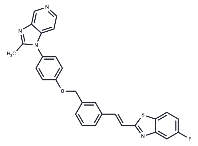 SMILESCC=1N(C=2C(N1)=CN=CC2)C3=CC=C(OCC4=CC(/C=C/C5=NC=6C(S5)=CC=C(F)C6)=CC=C4)C=C3