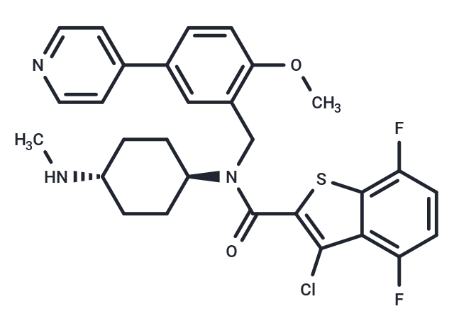 SMILESClC=1C=2C(SC1C(N(CC3=C(OC)C=CC(=C3)C=4C=CN=CC4)[C@H]5CC[C@H](NC)CC5)=O)=C(F)C=CC2F