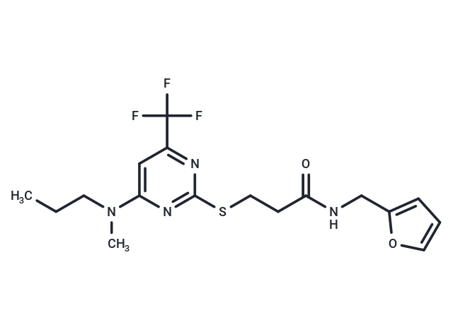 SMILESCCCN(C)c1cc(nc(SCCC(=O)NCc2ccco2)n1)C(F)(F)F