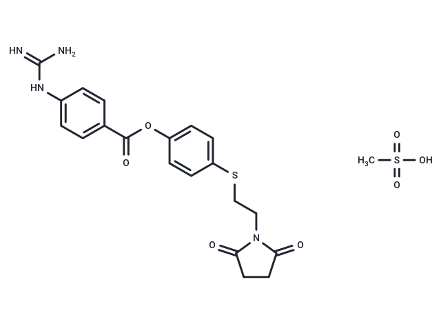SMILESO=C(OC1=CC=C(SCCN2C(=O)CCC2=O)C=C1)C3=CC=C(C=C3)NC(=N)N.O=S(=O)(O)C