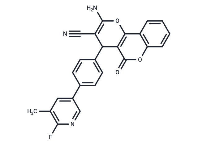SMILESN#CC1=C(OC=2C=3C=CC=CC3OC(=O)C2C1C4=CC=C(C=C4)C=5C=NC(F)=C(C5)C)N