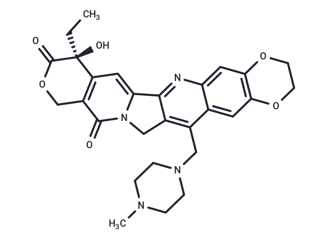Gimatecan (ST1481) 是一种有效的拓扑异构酶 I (topoisomerase I) 抑制剂。Gimatecan 是一种具有口服活性的喜树碱类似物。具有抗肿瘤活性。