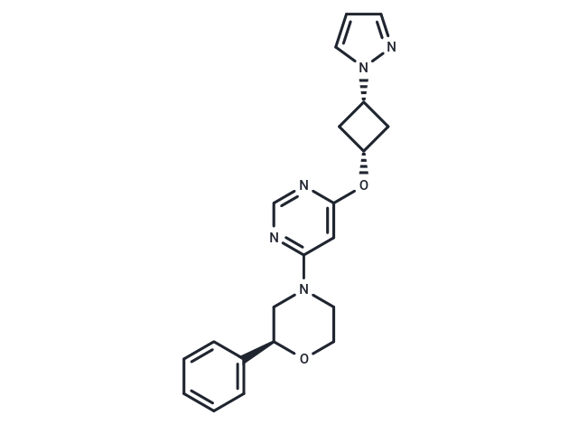 SMILESC1[C@@H](C[C@@H]1n1cccn1)Oc1cc(ncn1)N1CCO[C@H](C1)c1ccccc1