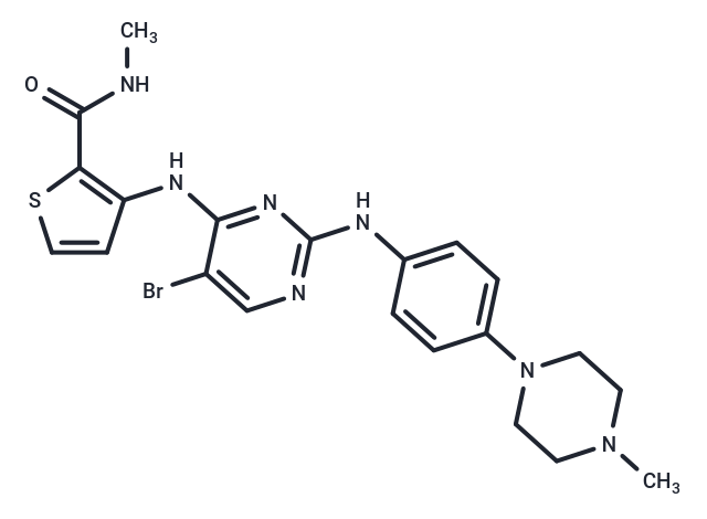 SMILESO=C(NC)C=1SC=CC1NC2=NC(=NC=C2Br)NC3=CC=C(C=C3)N4CCN(C)CC4