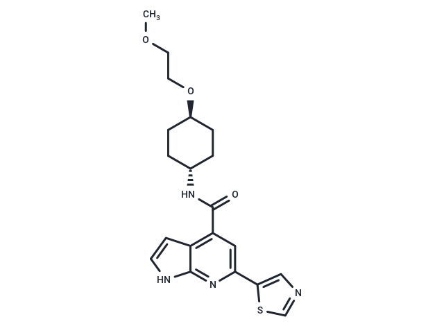 SMILESCOCCO[C@H]1CC[C@@H](CC1)NC(=O)c1cc(nc2[nH]ccc12)-c1cncs1