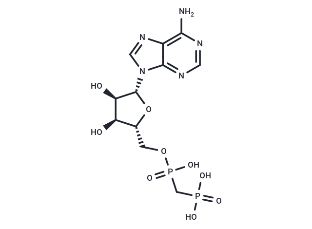 体外实验MethADP (AMP-CP: 20 μM) causes a marked inhibition of adenosine formation (0.96±0.96 μM) compared to untreated controls (9.6±1.5 μM) in A498 and RT4 cells, and MethADP (100 μM) completely inhibits the adenosine formation.