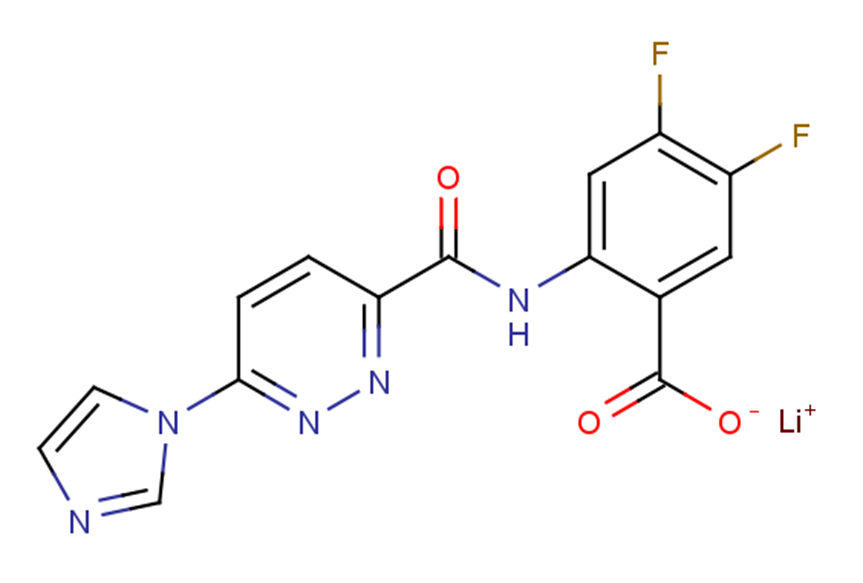 SMILES[Li+].[O-]C(=O)c1cc(F)c(F)cc1NC(=O)c1ccc(nn1)-n1ccnc1