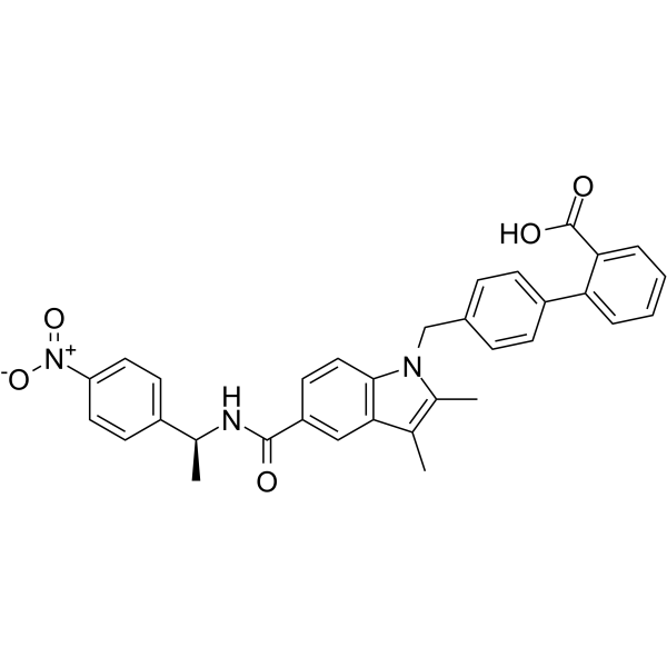 SMILES[H][C@@](C)(\N=C(/O)c1ccc2n(Cc3ccc(cc3)-c3ccccc3C(O)=O)c(C)c(C)c2c1)c1ccc(cc1)N(=O)=O