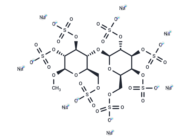 SMILESO=S(O[C@H]([C@H]([C@@H](O[C@@H]1COS(=O)([O-])=O)OC)OS(=O)([O-])=O)[C@@H]1O[C@H]2[C@@H]([C@H]([C@H]([C@H](O2)COS(=O)([O-])=O)OS(=O)([O-])=O)OS(=O)([O-])=O)OS(=O)([O-])=O)([O-])=O.[Na+].[Na+].[Na+].[Na+].[Na+].[Na+].[Na+]