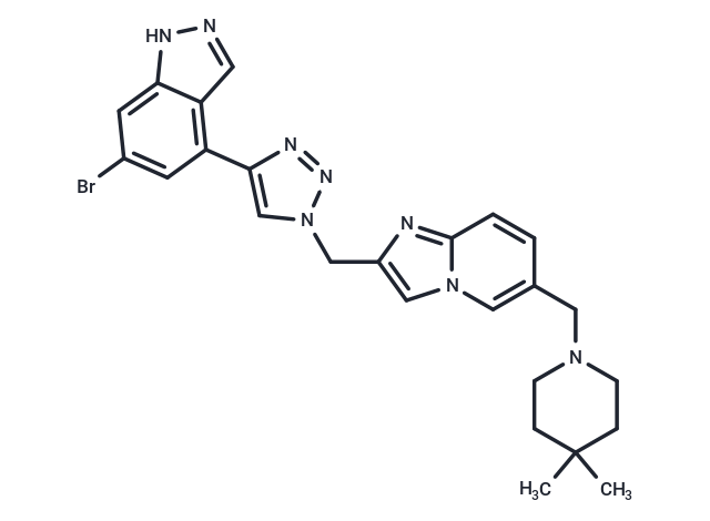 SMILESBrC=1C=C2NN=CC2=C(C1)C=3N=NN(C3)CC=4N=C5C=CC(=CN5C4)CN6CCC(C)(C)CC6