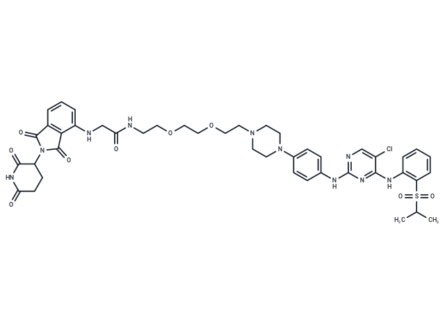 SMILESO=C1NC(=O)C(N2C(=O)C=3C=CC=C(NCC(=O)NCCOCCOCCN4CCN(C5=CC=C(C=C5)NC6=NC=C(Cl)C(=N6)NC=7C=CC=CC7S(=O)(=O)C(C)C)CC4)C3C2=O)CC1